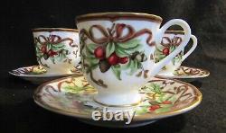 3 Tiffany Holiday Demitasse Cups With 4 Saucers